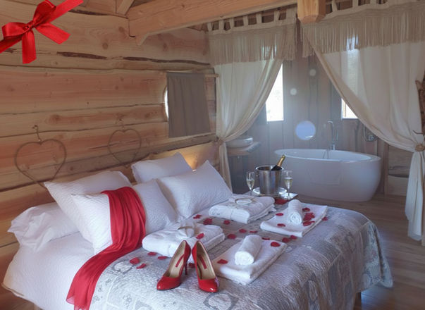 Cette cabane est pourvue d'un lit king size, d'une salle de bain dans un espace ouvert avec baignoire ilot situé dans la tour, toilettes, cuisine équipée, et d'une climatisation réversible qui pourra vous rafraichir l'été et vous chauffer l'hiver.